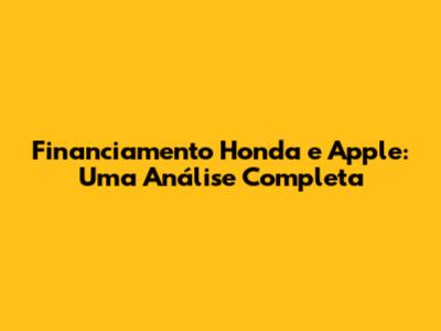 Financiamento Honda E Apple: O Que Você Precisa Saber!