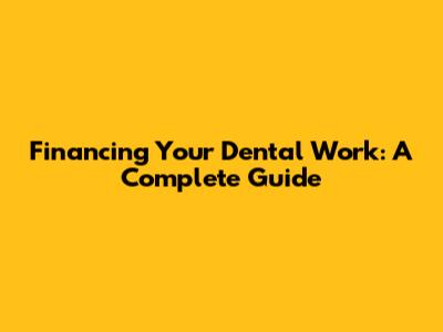Financing Your Dental Work: A Complete Guide