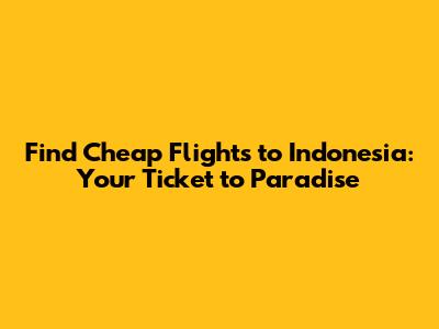Find Cheap Flights To Indonesia: Your Ticket To Paradise