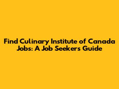 Find Culinary Institute Of Canada Jobs: A Job Seeker's Guide