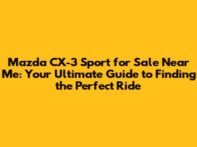 Where to Find a Mazda CX-3 Sport for Sale Near You