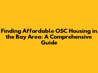 Finding Affordable OSC Housing In The Bay Area: A Comprehensive Guide