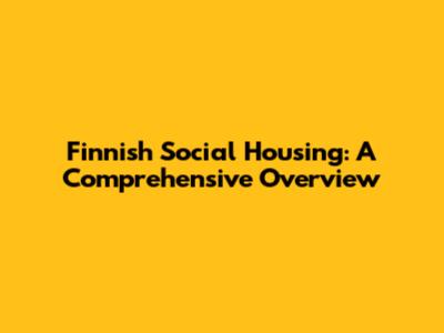 Finnish Social Housing: A Comprehensive Overview