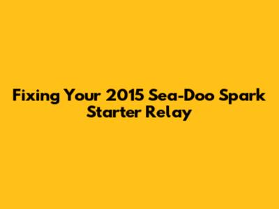 Hey there, fellow water enthusiasts! If you're the proud owner of a 2015 Sea-Doo Spark, you know the thrill of hitting the water, feeling that spray, and just enjoying the ride. But let's be real, nothing sours a perfect day faster than turning the key and… nothing. Or maybe just a sad click. If you've been scratching your head wondering why your beloved Spark isn't firing up, there's a good chance the culprit might be your 2015 Sea-Doo Spark starter relay. This often-overlooked component plays a crucial role in getting your engine to turn over, and when it fails, your joyride comes to a grinding halt. Don't worry, guys, because in this comprehensive guide, we're going to dive deep into understanding, troubleshooting, and even replacing the starter relay on your specific model. We'll break down everything in a friendly, easy-to-understand way, making sure you feel confident tackling this fix yourself. From identifying the tell-tale signs of a failing relay to providing step-by-step instructions for testing and replacement, we've got you covered. Our goal here isn't just to tell you what to do, but to help you understand why you're doing it, empowering you with the knowledge to keep your Spark running smoothly for many seasons to come. So, grab your tools, get ready to get a little hands-on, and let's bring that spark back to your Sea-Doo Spark!