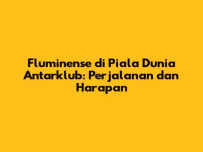 Fluminense Di Piala Dunia Antarklub: Perjalanan Dan Harapan