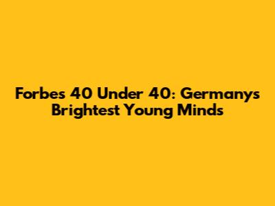 The Forbes 40 Under 40 is more than just a list; it's a powerful platform that celebrates ambition, innovation, and leadership. For Germany, a country renowned for its engineering prowess, economic stability, and cultural richness, the "40 Under 40" list serves as a vital indicator of the nation's future direction. It showcases the young entrepreneurs, scientists, artists, and activists who are shaping Germany's trajectory and contributing to its global influence. These individuals, through their groundbreaking work and visionary ideas, are not only transforming their respective fields but also inspiring the next generation of leaders. Their stories of resilience, determination, and success serve as a beacon of hope, demonstrating the immense potential that lies within the country's young minds. By recognizing and celebrating these achievements, Forbes reinforces the importance of investing in youth, fostering innovation, and creating an environment where talent can thrive.