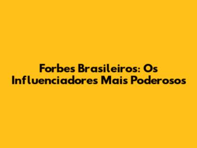 Forbes Brasileiros: Os Influenciadores Mais Poderosos