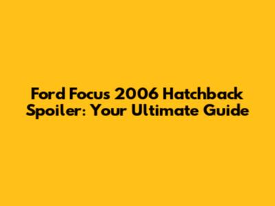 Ford Focus 2006 Hatchback Spoiler: Everything You Need