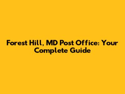 • Where can I find the address and phone number for the Forest Hill Post Office? The address for the Forest Hill Post Office is 2315 Rock Spring Rd, Forest Hill, MD 21050, and their phone number is (410) 838-8959.