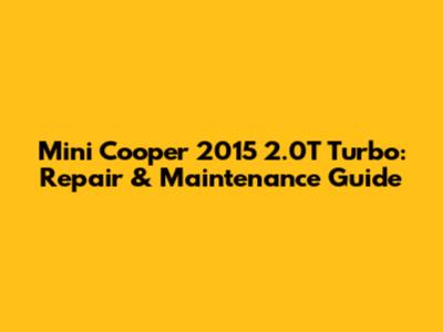 Mini Cooper 2015 2.0T Turbo: Repair & Maintenance Guide
