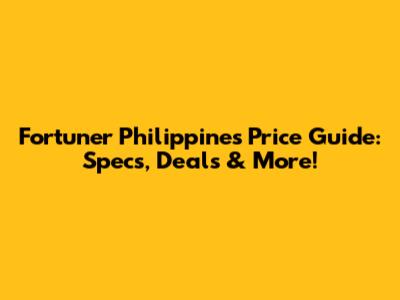 Fortuner Philippines Price Guide: Specs, Deals & More!