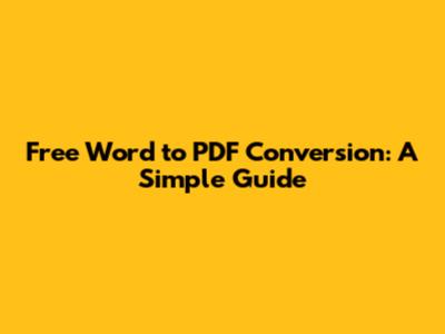 Free Word To PDF Conversion: A Simple Guide