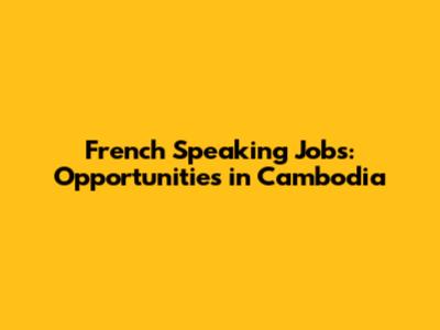 French Speaking Jobs: Opportunities In Cambodia