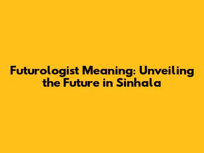 Futurologist Meaning: Unveiling The Future In Sinhala