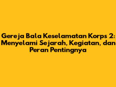 Gereja Bala Keselamatan Korps 2: Sejarah, Kegiatan, Dan Peran Pentingnya