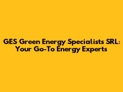 GES Green Energy Specialists SRL: Your Go-To Energy Experts