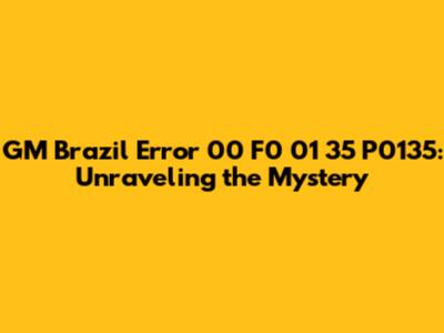 GM Brazil Error 00 F0 01 35 P0135: Causes, Solutions, And Prevention