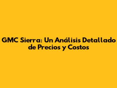 GMC Sierra: Un Análisis Detallado De Precios Y Costos