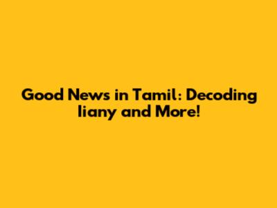 Good News In Tamil: Decoding Iiany And More!