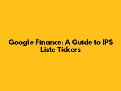 Hey guys! Ever felt like navigating the stock market is like trying to decipher ancient hieroglyphics? Fear not, because today we're diving into Google Finance and how to crack the code of IPS Liste Tickers. We'll break down everything you need to know, from understanding what these tickers are, to how to use them effectively to track your favorite stocks. So grab your favorite beverage, settle in, and let's get started on this exciting journey into the world of finance!