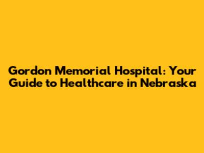 Gordon Memorial Hospital: Your Guide To Healthcare In Nebraska