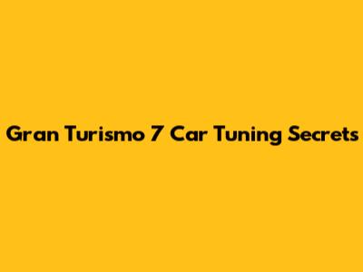 Gran Turismo 7 Car Tuning Secrets
