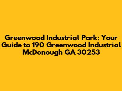 Hey guys, let's dive into 190 Greenwood Industrial McDonough GA 30253! This place is a real hub of activity and a key part of the economic landscape in McDonough, Georgia. We're going to explore everything you need to know about this location, from what kind of businesses call it home to its strategic advantages. Think of this as your one-stop guide to Greenwood Industrial Park, offering a deep dive into the practical aspects and the broader impact of this industrial center.