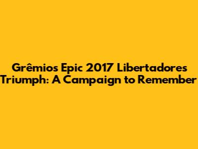 The 2017 Copa Libertadores campaign was nothing short of legendary for Grêmio. Guys, let's dive deep into what made this victory so special, exploring every nook and cranny of their journey to South American glory. We'll break down the key moments, the star players, and the tactical genius that led them to lift the trophy. For Grêmio fans, this is a trip down memory lane. For everyone else, it's a lesson in footballing excellence and determination.