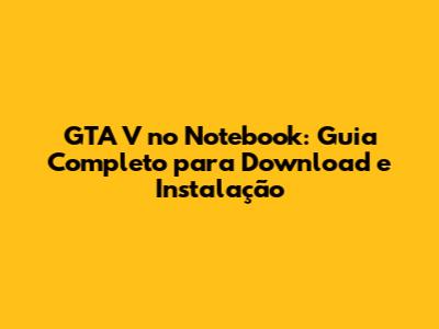 GTA V No Notebook: Guia Completo Para Download E Instalação
