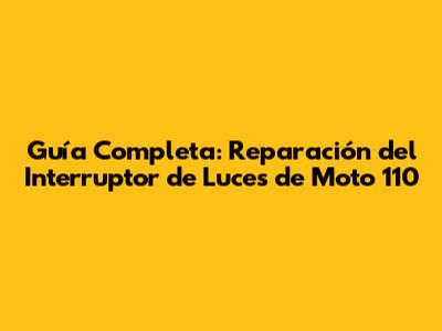 Guía Completa: Reparación Del Interruptor De Luces De Moto 110