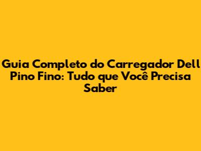 Guia Completo Do Carregador Dell Pino Fino: Tudo Que Você Precisa Saber
