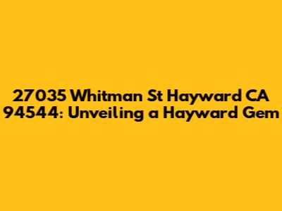 Hey there, real estate enthusiasts! Today, we're diving deep into the property located at 27035 Whitman St, Hayward, CA 94544. This isn't just a random address; it's a potential home, an investment, and a piece of the vibrant Hayward community. Whether you're a first-time homebuyer, a seasoned investor, or simply curious about the local market, this exploration will provide you with a comprehensive overview of this specific property and the surrounding area. Let's get started, shall we?