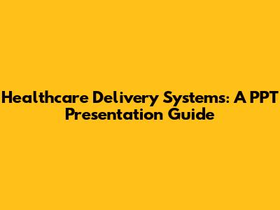Healthcare Delivery Systems: PPT Presentation Guide