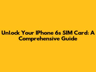 Unlock Your IPhone 6s SIM Card: A Comprehensive Guide