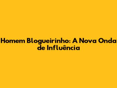 Homem Blogueirinho: A Nova Onda De Influência