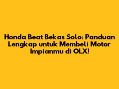 Mencari Honda Beat bekas di Solo memang gampang-gampang susah, tapi dengan panduan ini, semoga kalian bisa menemukan motor impian kalian dengan mudah. Ingat, selalu perhatikan kondisi motor, kelengkapan dokumen, dan jangan tergiur dengan harga yang terlalu murah. Dengan sedikit ketelitian dan kewaspadaan, kalian bisa mendapatkan Honda Beat bekas yang berkualitas dan sesuai dengan budget kalian. Selamat berburu Honda Beat bekas di OLX Solo! Semoga sukses!