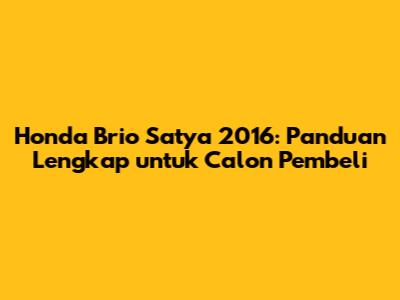 Honda Brio Satya 2016: Harga, Spesifikasi, Dan Tips Beli