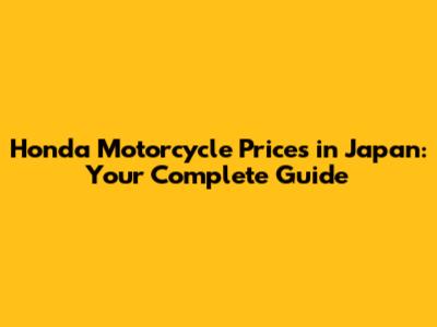 Honda Motorcycle Prices In Japan: Your Complete Guide