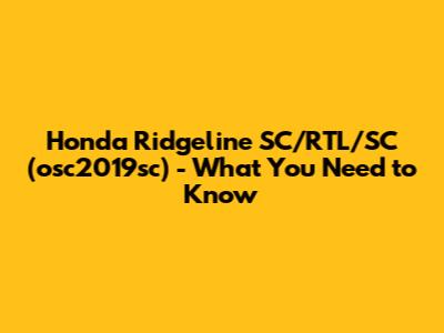 Honda Ridgeline SC/RTL/SC (osc2019sc) - What You Need To Know