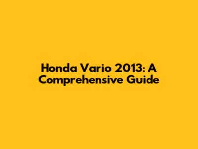 Maintaining Your Honda Vario 2013: Tips and Tricks