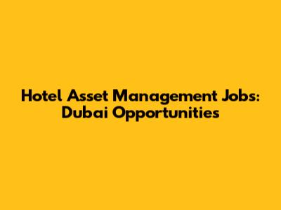 Hotel Asset Management Jobs: Dubai Opportunities