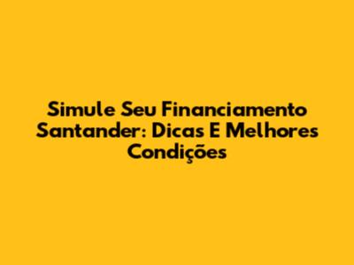 Simule Seu Financiamento Santander: Dicas E Melhores Condições