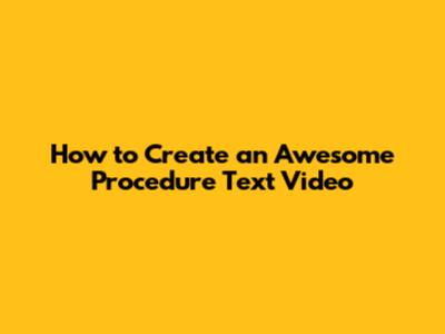How To Create An Awesome Procedure Text Video