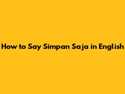 How To Say 'Simpan Saja' In English