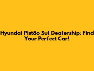 Hyundai Pistão Sul Dealership: Find Your Perfect Car!