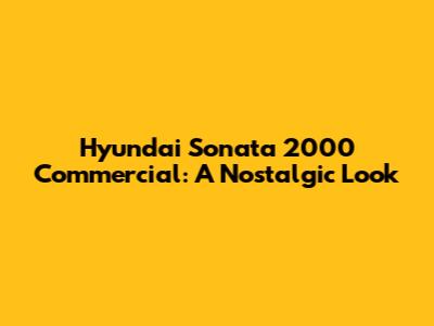 Hyundai Sonata 2000 Commercial: A Nostalgic Look