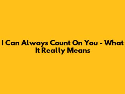 'I Can Always Count On You' - What It Really Means