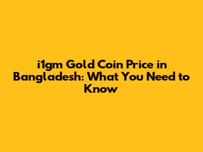 I1gm Gold Coin Price In Bangladesh: What You Need To Know