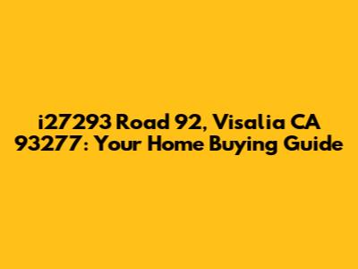 Hey there, future homeowner! If you're eyeing a property at i27293 Road 92, Visalia, CA 93277, then you're in the right place. This guide is your ultimate companion to navigating the exciting world of real estate in this specific locale. Buying a home is a huge decision, and it's essential to be well-informed before taking the plunge. We'll delve into everything you need to know about this address, the surrounding neighborhood, and what it's like to live in Visalia. From market trends to local amenities, weâve got you covered. So, grab a cup of coffee (or your favorite beverage), sit back, and let's explore i27293 Road 92, and the charming city of Visalia.