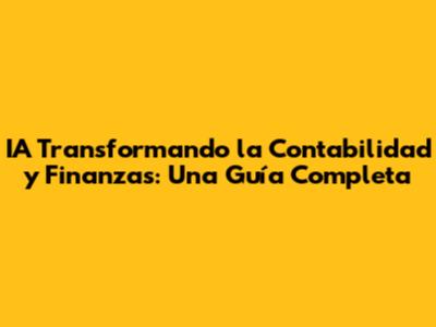 IA Transformando La Contabilidad Y Finanzas: Una Guía Completa